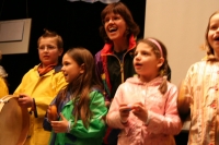 Ein Kinder-Projektchor in Regenzeug stimmte zu Beginn des Abends auf das Thema ein.
