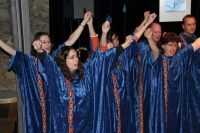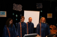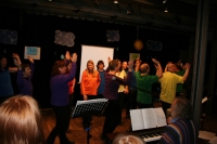 Der Chor hatte den Abend im Horber Kloster dem Thema Noah gewidmet und Stücke, die zum Thema passen, erarbeitet. Zunächst wurde die Zeit vor der Sintflut beschrieben, dazu trug der Chor schwarze Kleidung. Die Zeit der Sintflut wurde in den blauen Gewändern symbolisiert. Als nach der Sintflut die Sonne wieder aufgeht, singt der Chor in Regenbogenfarben.