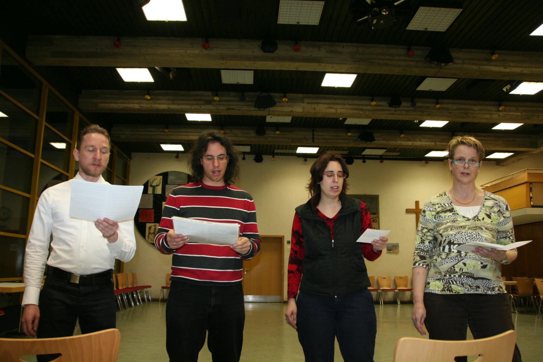 Am 23. März trat das Ensemble - das erste Mal unter dem neuen Namen "Vocal Trails" - mit einem neuen Programm in der Mensa des Martin-Gerbert-Gymnasiums auf. Einige Tage zuvor fand die Generalprobe mit unseren Musikern Claudius und Michael im Gemeindehaus Herrenberg statt.